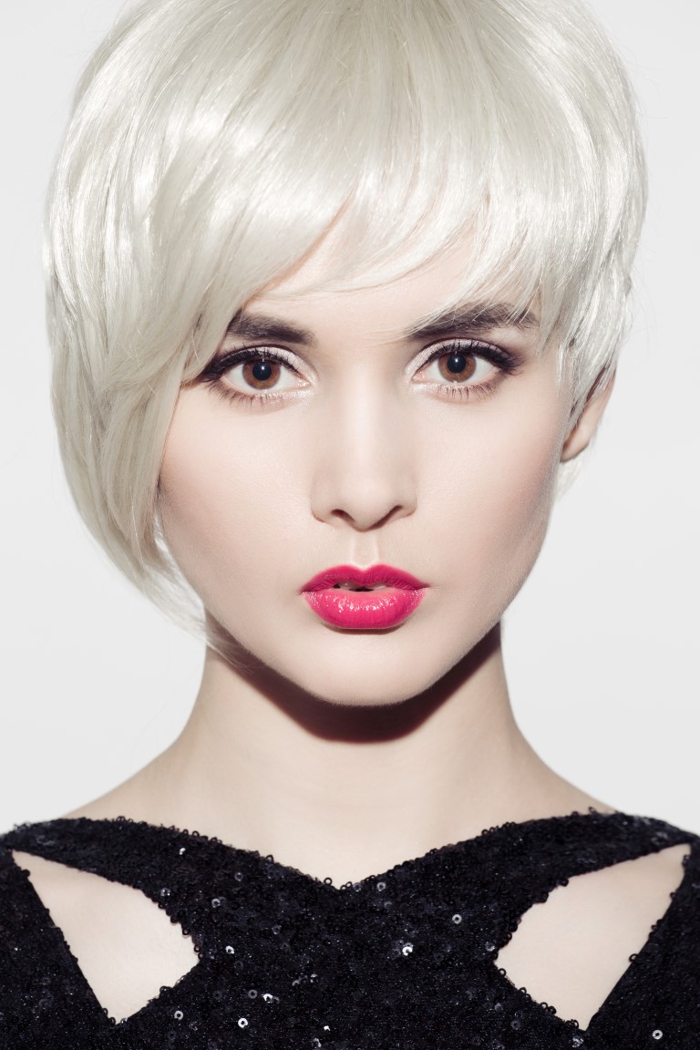 Close-up portrait of beautiful model with perfect glossy blond h